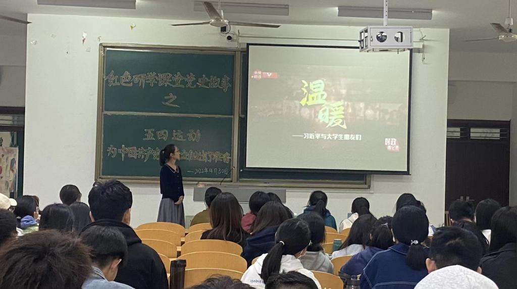 4月30日上午,范冰冰高潮一区二区三区“红色研学课堂”《习近平讲党史故事》在博文楼0427教室开讲。选修该门第二课堂的76名学生参加听课学习。