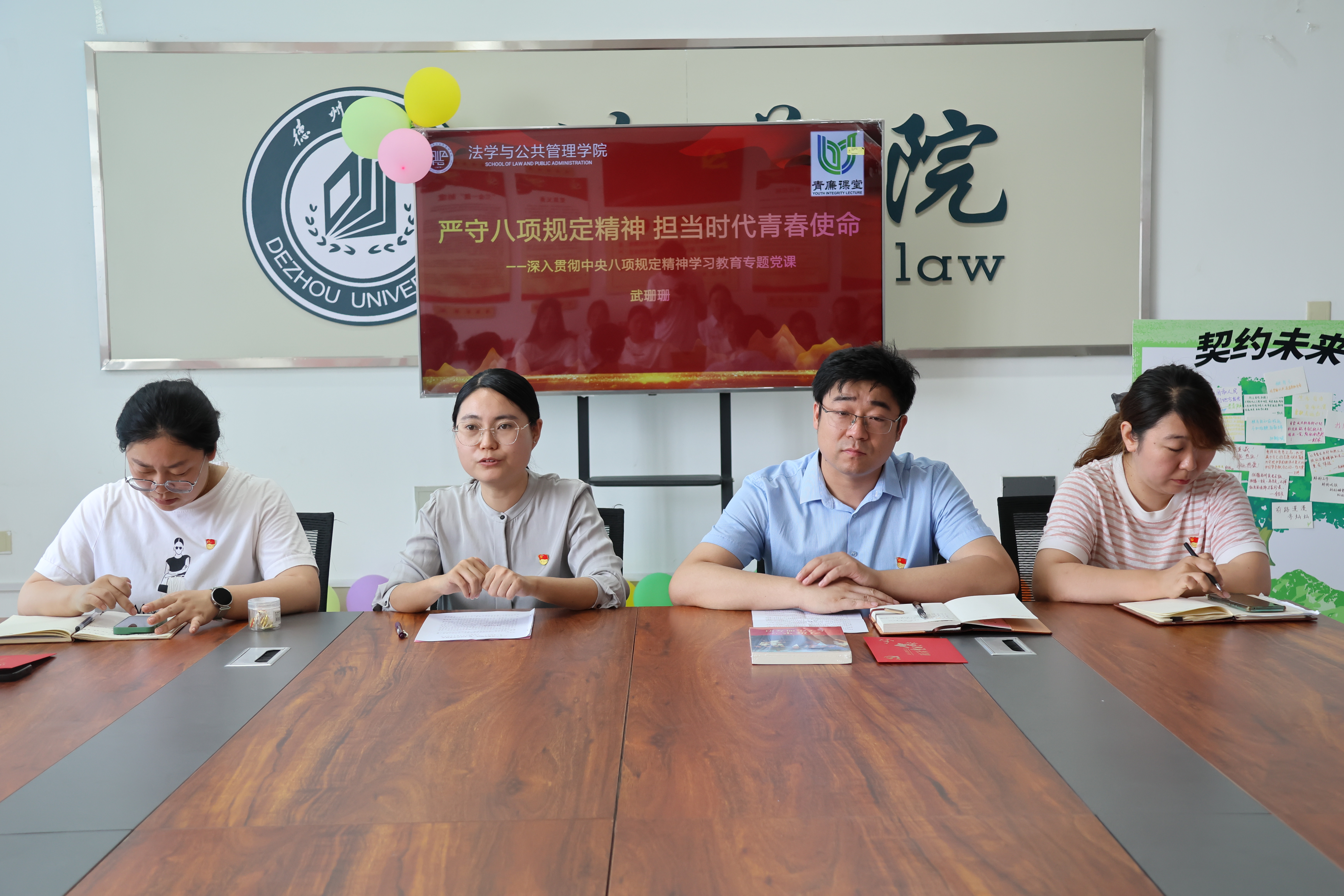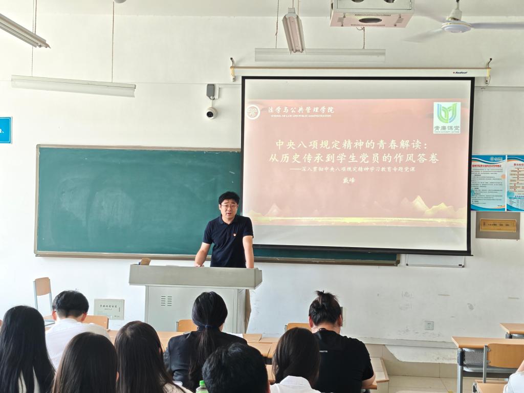 为持续巩固拓展深入贯彻中央八项规定精神学习教育成果,不断推进学习教育走深走实,近日,法学与公共管理学院党委精心组织各级党组织书记开展深入贯彻中央八项规定精神学习教育专题党课活动,引导全院师生党员筑牢思想防线,涵养清风正气。