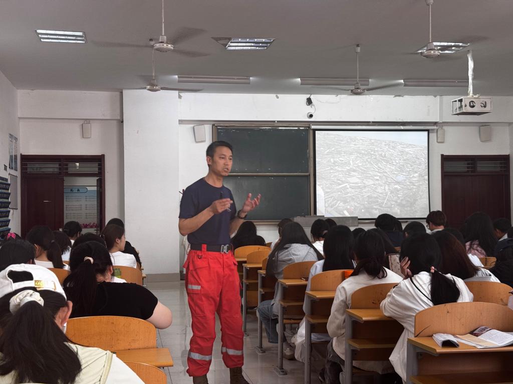 山东省新中诚应急产业有限公司救援培训师祁建国队长与王彬教官首先在博文楼439会议室与法学与公共管理学院行政管理系教师围绕行政管理专业(应急管理方向)培养目标、职业素养、课程设置、实习实训、就业方向等进行了座谈交流。座谈交流结束后祁建国队长与王彬教官为2024级行政管理本科与2024级行政管理专升本班在博文楼431教室结合具体案例和实际工作,与同学们分享了参与的国内外地震救援案例并介绍了应急救援工具的使用。教学通俗易懂,兼具理论性与实践性。