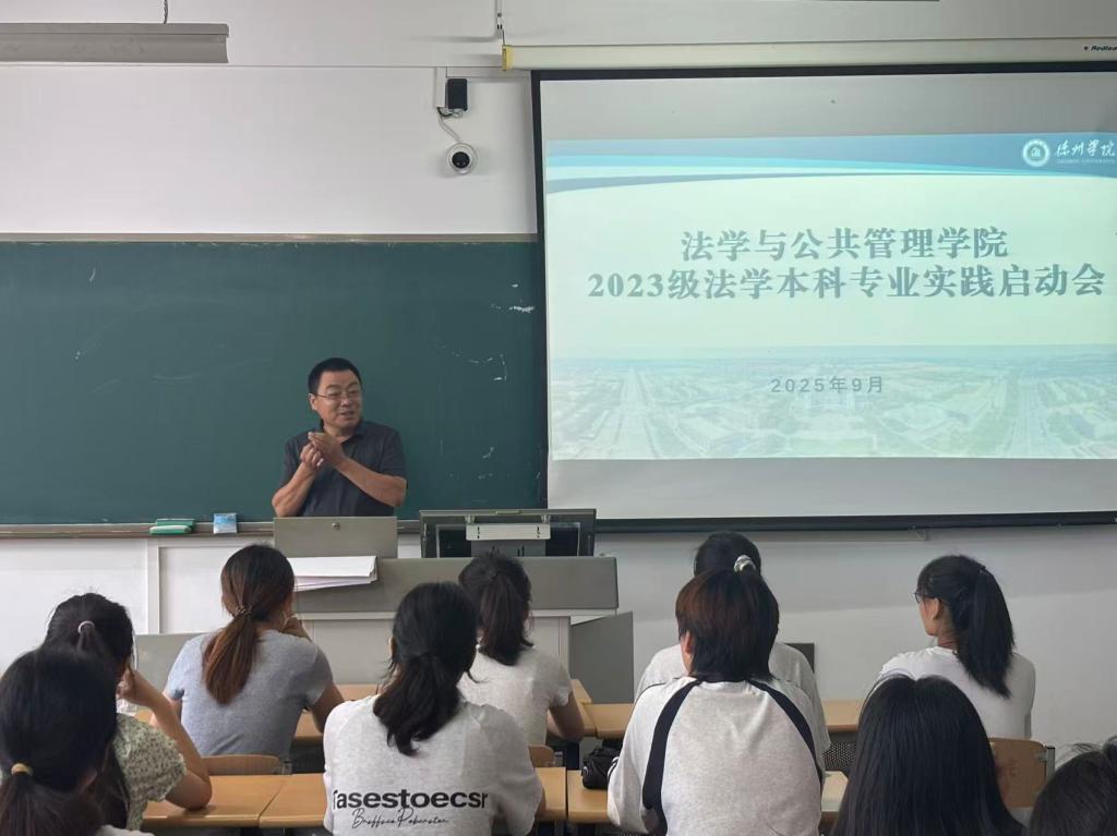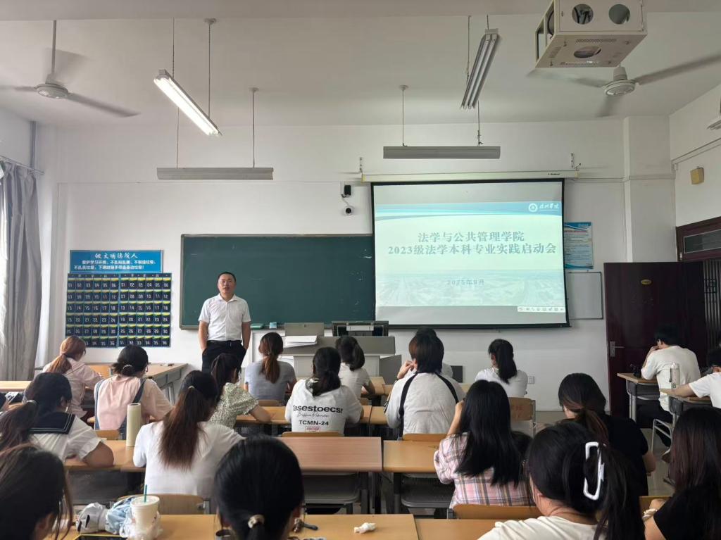 近日,法学与公共管理学院为即将奔赴专业实习岗位的2023级法学、行政管理专业学生举行了实习动员大会。学院院长、系主任、实践教学中心主任及全体实习生与会。