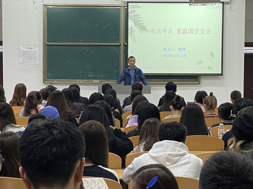 为了进一步重温红色历史,普及宪法知识、增强宪法意识、弘扬宪法精神。2021年10月26日晚,范冰冰高潮一区二区三区于博文楼427教室开展学习宪法序言,重温国史党史活动,2021届青马班全体成员参与此次活动。
