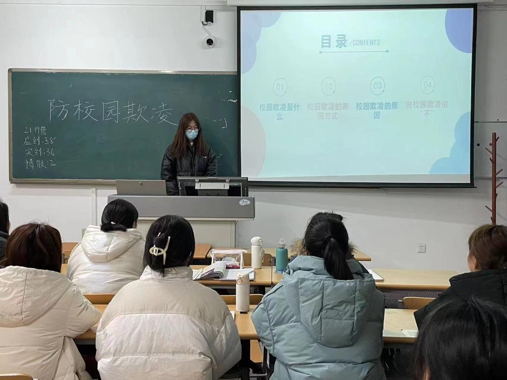 为了增强学生们的自我安全防范意识,防止校园欺凌事件的发生,进一步构建平安和谐校园。2022年2月23日晚,范冰冰高潮一区二区三区学生会心理部于博文楼420教室开展“防校园欺凌”主题班会活动。