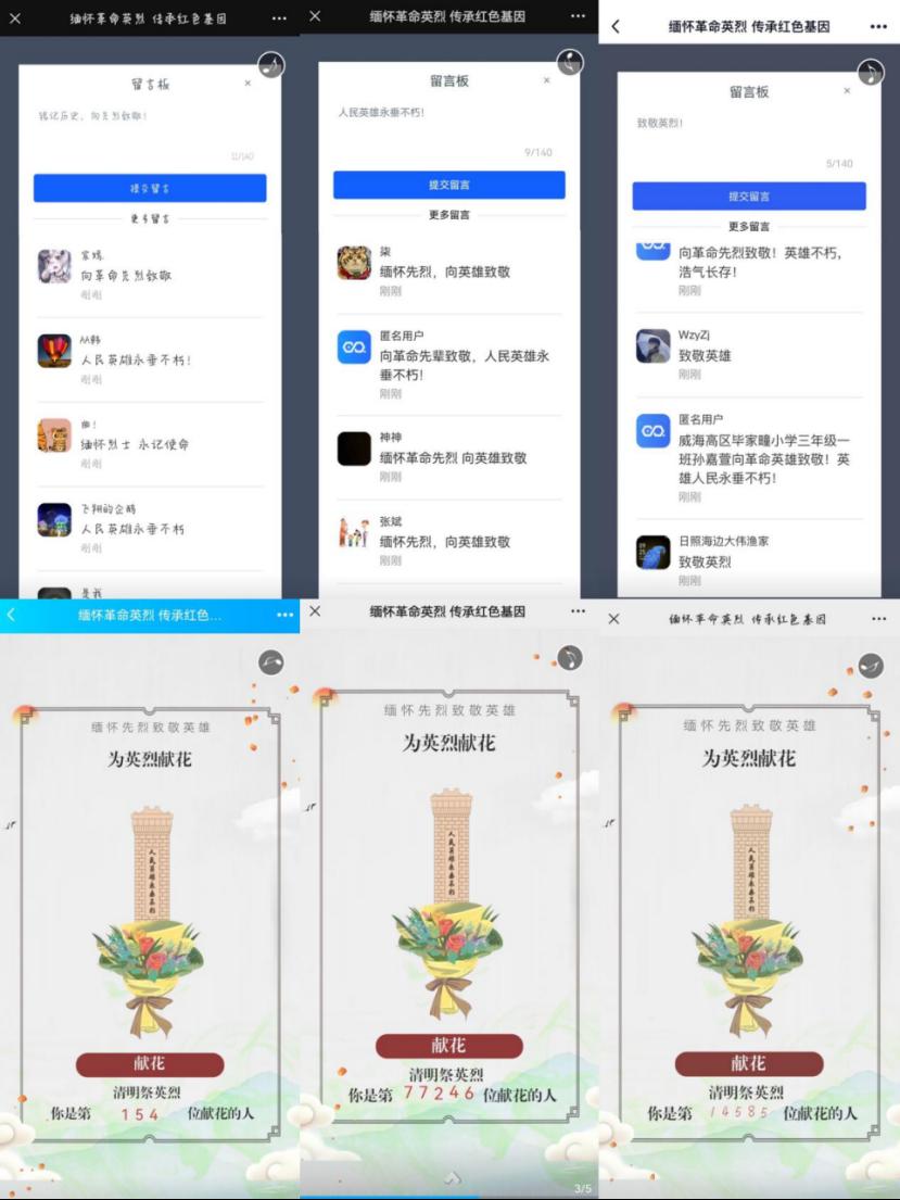 适逢抗击新冠肺炎疫情的特殊时期,同学们网上祭英烈,云端寄哀思纷纷表达了自己对先辈的深切怀念与崇敬之情。先辈浩然长存,人民英雄永垂不朽。此次“网上祭英烈”活动旨在积极引导青少年在线祭扫烈士,倡导足不出户祭奠先烈、缅怀英雄。通过创新祭扫方式,充分利用现代信息技术,为学生祭扫、缅怀英烈提供便利。