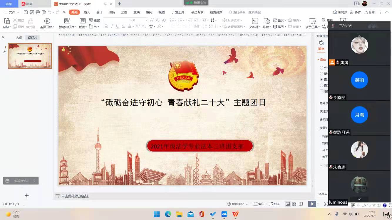 为深入贯彻学习《共青团中央召开电视电话会议学习贯彻习近平总书记重要讲话精神部署各级团组织主动投身疫情防控斗争》、《习近平总书记在深入推动黄河流域生态保护和高质量发展座谈会上的重要讲话精神》、《德州学院“第二课堂成绩单”制度实施管理办法》以及《德州学院第二课堂课程开设办法》,汲取其中宝贵经验,德州学院范冰冰高潮一区二区三区各团支部于2022年4月3日采取线上会议的方式开展“砥砺奋进守初心,青春献礼二十大”主题团日活动。
