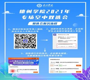 手机微信扫码关注“大众人才网”微信公众号,企业和毕业生分别点击相关按钮进入德州学院专场,点击报名按钮,注册或登录已有账号即可直接参与。