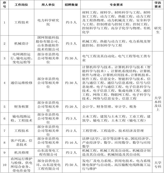 根据《国家电网公司招聘高等学校毕业生管理办法》,按照2021年招聘高校毕业生总体安排,国网山东省电力公司组织开展第二批公开招聘。