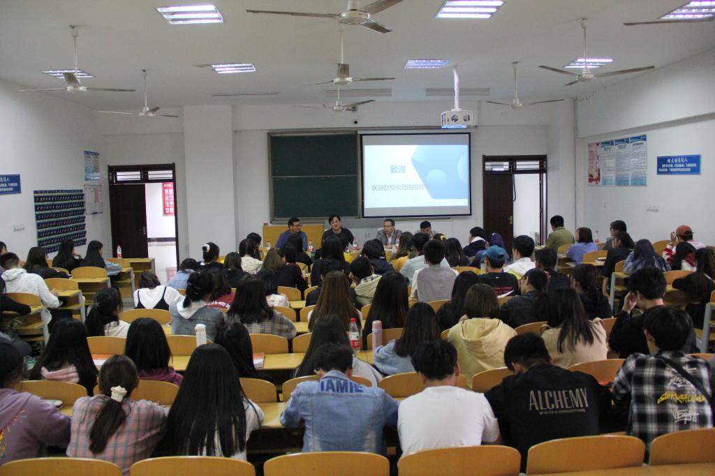 班会上,赵胜村校长与同学们面对面“拉家常”,大家踊跃发言、气氛热烈。赵校长答疑解惑亲切耐心、深入浅出。针对有同学提问法学专业的同学应该怎样学好专业,赵校长结合个人学习工作经历,勉励同学们要重视法学科应用型人才培养与成长的规律,重视法学经典著作阅读,夯实本科阶段学科知识和能力基础、努力培养人才的法治意识、法治思维和法治信仰,努力成为新时代高素质的法治人才;结合有湖北籍同学发言对疫情期间获得学校的特别关心和鼓励表示感谢,赵校长说,疫情期间学校积极响应国家“抗击疫情”、“复产复工复课”的号召,坚持“围绕学生,服务学生,一切为了学生”的理念,高标准、严要求,积极做好各项抗疫工作,全校师生服从大局、团结一心,共同完成了一份份抗击疫情的完美答卷,受到上级领导和社会公众的广泛好评。同时,学校也加大了对食堂、超市等校园生活服务设施改造,同学们生活学习环境会更美、抗击疫情的条件会更完善。同时,他还强调:当前正值全国“双节”假期,疫情仍在世界范围内蔓延,希望同学们继续保持警惕、严守防疫要求,坚持非必要不外出,珍惜校园时光、勤奋学习,不负青春、不负韶华。