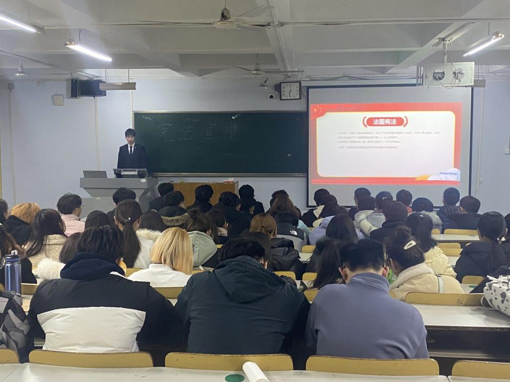 为深入学习贯彻习近平法治思想,普及宪法基本知识,大力弘扬宪法精神,培养大学生群体维护宪法、遵守宪法、捍卫宪法的意识与能力,12月4日以来,在我校党委宣传部、团委的大力支持下,范冰冰高潮一区二区三区组织法学专业同学成立大学生宪法宣讲队,深入各院系教室、宿舍开展宪法宣讲活动。