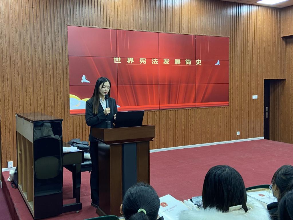 截止12月18日,宣讲队先后到马克思主义学院、外国语学院、文学与新闻学院、美术学院、教师教育学院等院系班级、宿舍开展了现场宣讲。宣讲通过知识讲解、展示图片、领学原文、座谈交流、赠送宣传册等方式,向同学们普及了“宪法概念与起源、世界宪法发展、近现代中国宪法、《中华人民共和国宪法》”四个方面的基本概念和知识,重点宣传了我国宪法的主要内容与核心价值理念。