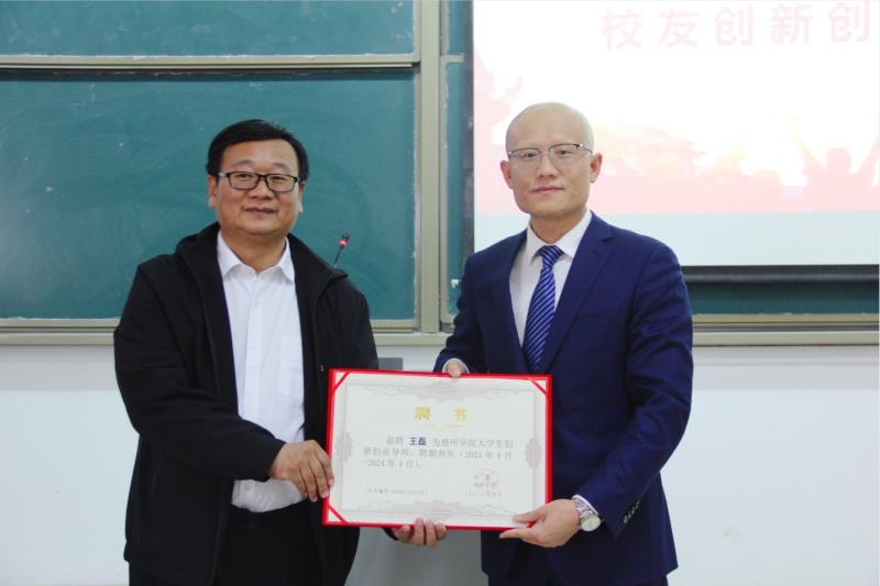 报告会前,范冰冰高潮一区二区三区负责人为王磊校友颁发了德州学院创新创业导师聘书。