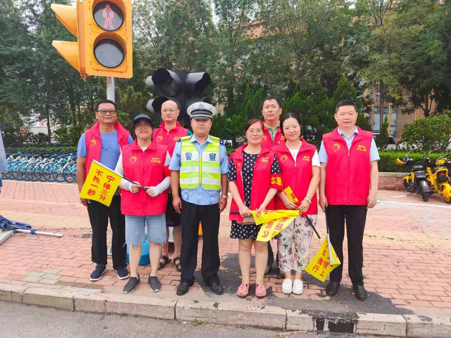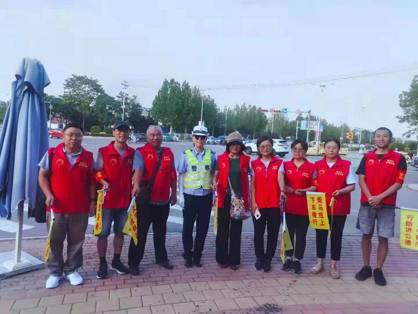 参加此次志愿服务活动的老师不畏酷热天气,面对交通高峰期的车流,配合交警同志,认真负责指引行人车辆安全过路口、劝阻不文明行为,增强出行者的交通安全意识和交通文明意识,为德州文明城市创建贡献一份力量。