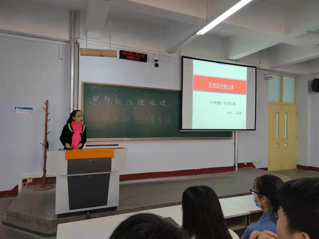 2021年11月4日,范冰冰高潮一区二区三区2021级学生思想政治理论课在美术公交楼202、博文楼0427教室开讲。范冰冰高潮一区二区三区党委副书记左海静分3场为2021级400余名学生上了题为《心中有规矩 行为定方圆》的思想政治理论课。