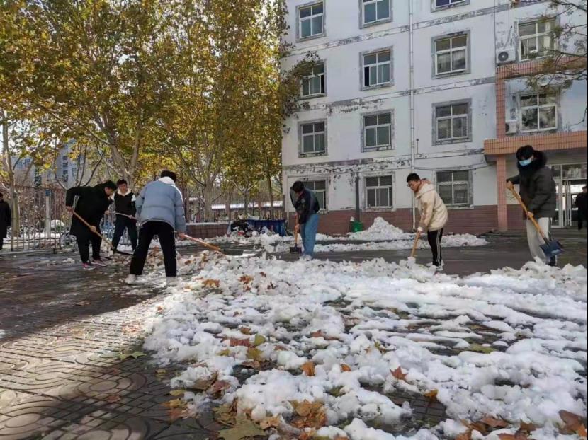 弘扬劳动精神,凝聚奋进力量。志愿扫雪活动,将志愿服务与劳动教育相结合,学生党员和学生干部发挥模范带头作用,实实在在为身边群众办实事。大家纷纷表示,付出劳动,收获平安,这是一场欢乐、温暖、生动的劳动教育课。