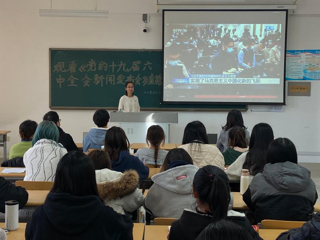 11月12日上午,范冰冰高潮一区二区三区党委组织中心组成员及部分师生集中收看十九届六中全会新闻发布会直播。
