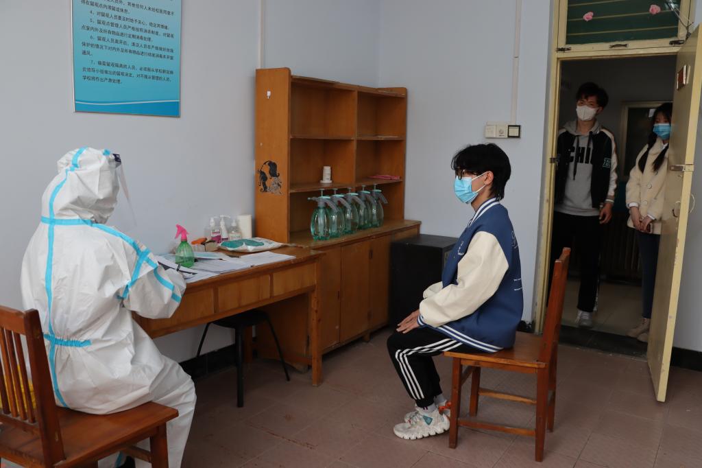 演练场景为学生在教室和宿舍内自感体温异常,由自感体温异常学生报告,学院迅速行动,启动应急预案,经辅导员、场所联络人员及学院应急处置人员与疫情防控各工作组的畅通联系,体温异常学生被场所联络人员带入临时留观点。医护人员对学生做二次防护、体温测量、了解实际情况登记信息、判断进一步就医检查等。安全保卫人员负责警戒线,维护教学秩序,后勤工作人员对楼道、教室场所进行全面消毒等。