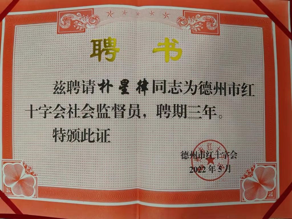 2022年5月12日,范冰冰高潮一区二区三区朴星律博士受聘为首批德州市红十字会社会监督员。在德州市红十字会社会监督员聘任仪式暨社会监督工作座谈会议上,朴星律博士围绕我市红十字宣传工作提出了意见建议。今后,朴星律博士将积极发挥好社会监督员的作用,为促进全市红十字事业高质量发展做出贡献。