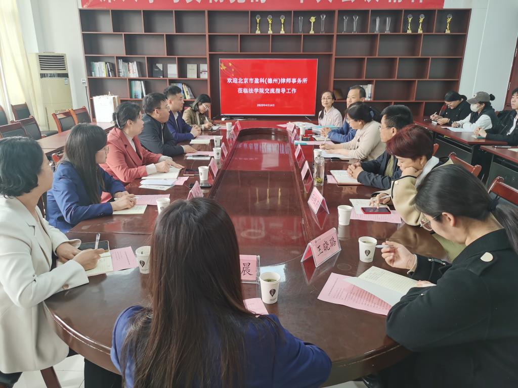 4月14日下午,北京盈科(德州)律师事务所执行主任李君、党支部书记付辉等一行9人来我院党建交流。学院班子成员、部分教师和学生代表参加。