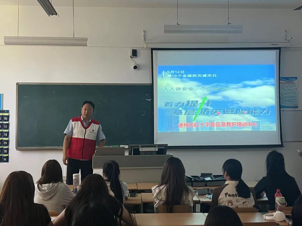 实训训现场,德州红十字会专业救护人员通过生动的案例和详细的讲解,向学生们传授了心肺复苏、止血包扎、骨折固定等基本的急救知识和技能。此外,还进行了心肺复苏模拟演练,让学员们亲身体验了急救过程,加深了对急救知识的理解和掌握。