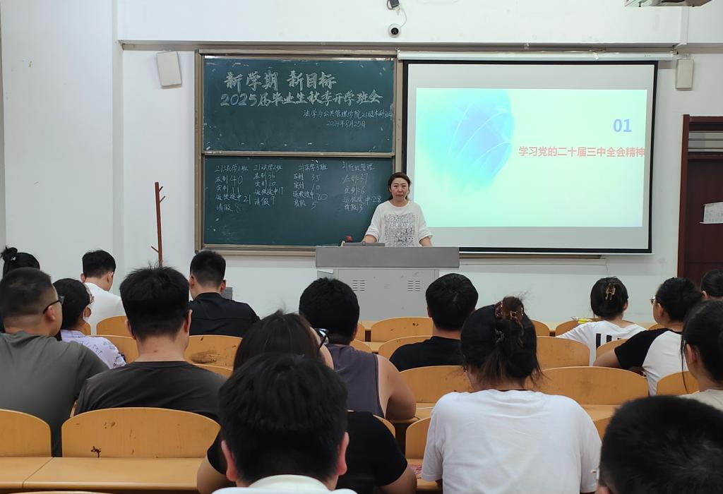 为做好2024年秋季学期开学后的各项学生工作,加强学生思想政治教育、安全教育及日常管理,促进学生健康成长成才,8月25日,法学与公共管理学院各班级组织召开2024年秋季学期“开学第一课”主题教育班会,全体处级干部参加指导班会。