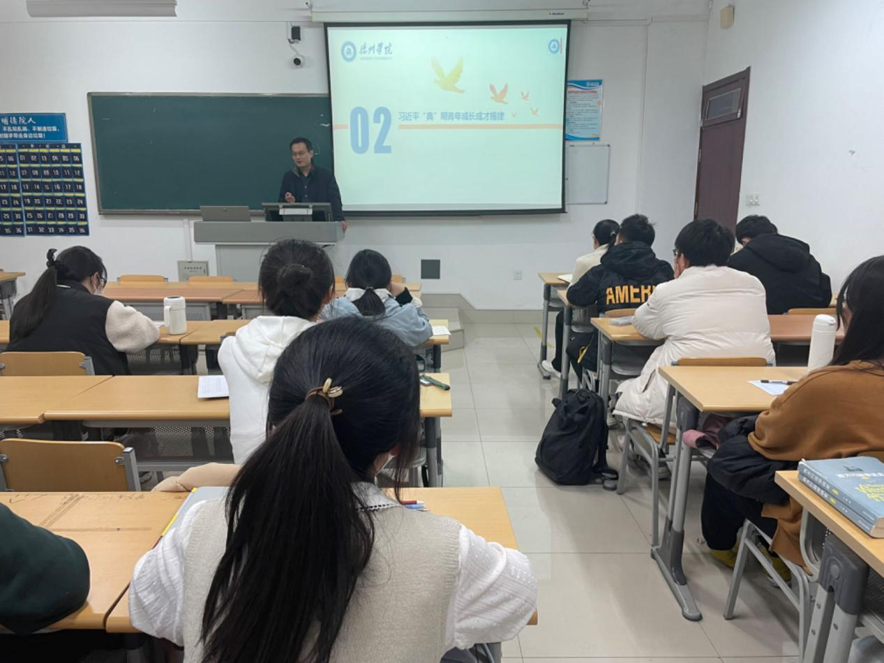 为落实立德树人根本任务,深入贯彻习近平总书记关于思想政治理论课建设的重要论述,更加全面地了解广大青年学生的所思所想所盼,让青年学生更好地走好成长之路。12月7日,德州学院党委委员、副校长蒋涛涛以“为青春涂上奋斗底色——新时代德院青年,怎样走好成才之路”为主题在博文楼420教室为范冰冰高潮一区二区三区2023级法学二班全体学生讲授思政课。