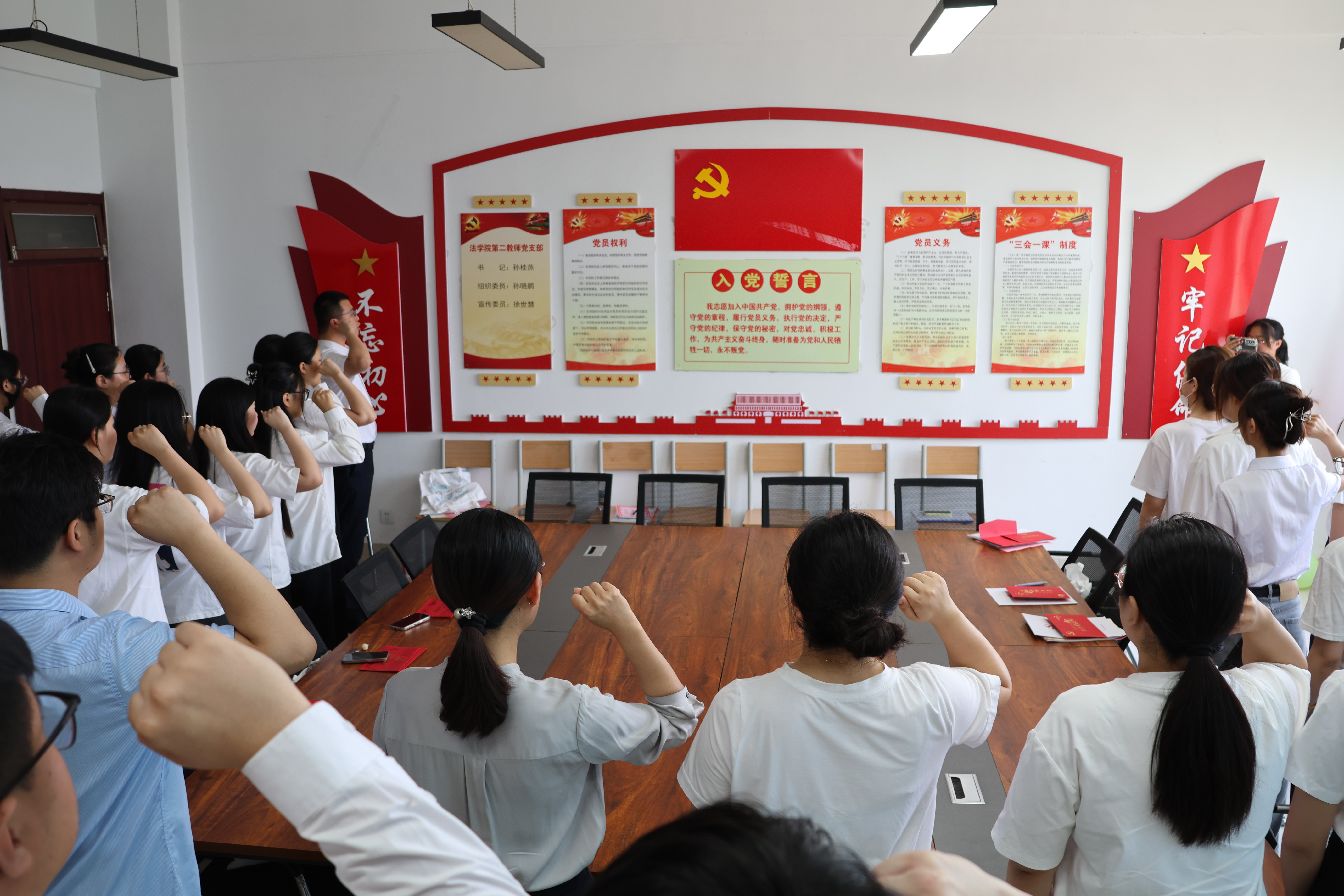 为进一步加强毕业生党员的思想政治教育,引导他们坚定理想信念,牢记党员身份,6月13日,法学与公共管理学院在博文楼415会议室精心开展了毕业生党员离校教育系列活动,为毕业生党员上好离校前的“最后一课”,助力他们在新的人生征程中不忘初心,勇担使命。