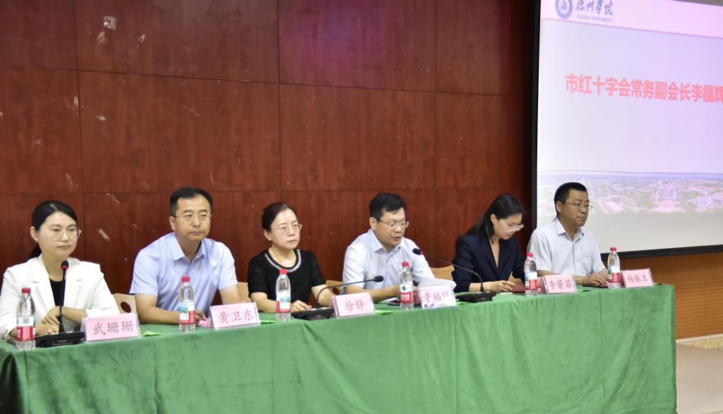 6月15日上午,法学与公共管理学院与德州市红十字会实习实训基地签约授牌暨应急救护培训班开班仪式在我校举行。校党委委员、副校长徐静,德州市红十字会常务副会长、一级调研员李福辉,红十字会党组成员、副会长黄卫东,校团委书记李芳菲、法学与公共管理学院党委书记武珊珊、院长杨振生出席活动,市红十字会有关负责同志、应急救援志愿者、法学与公共管理学院师生代表200余人参加活动。