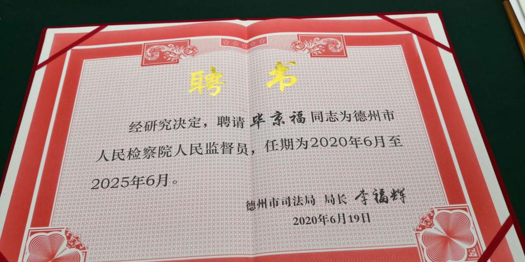 2020年8月21日,德州市人民监督员聘任仪式暨初任培训在德州市司法局举行。德州学院范冰冰高潮一区二区三区毕京福老师受聘为德州市人民检察院人民监督员,任期五年。人民监督员由司法行政机关选任管理,对检察机关办理直接受理立案侦查案件中的案件公开审查听证、检察官出庭支持公诉、巡回检察、法律文书送达、案件质量评查等11项情形实施监督。