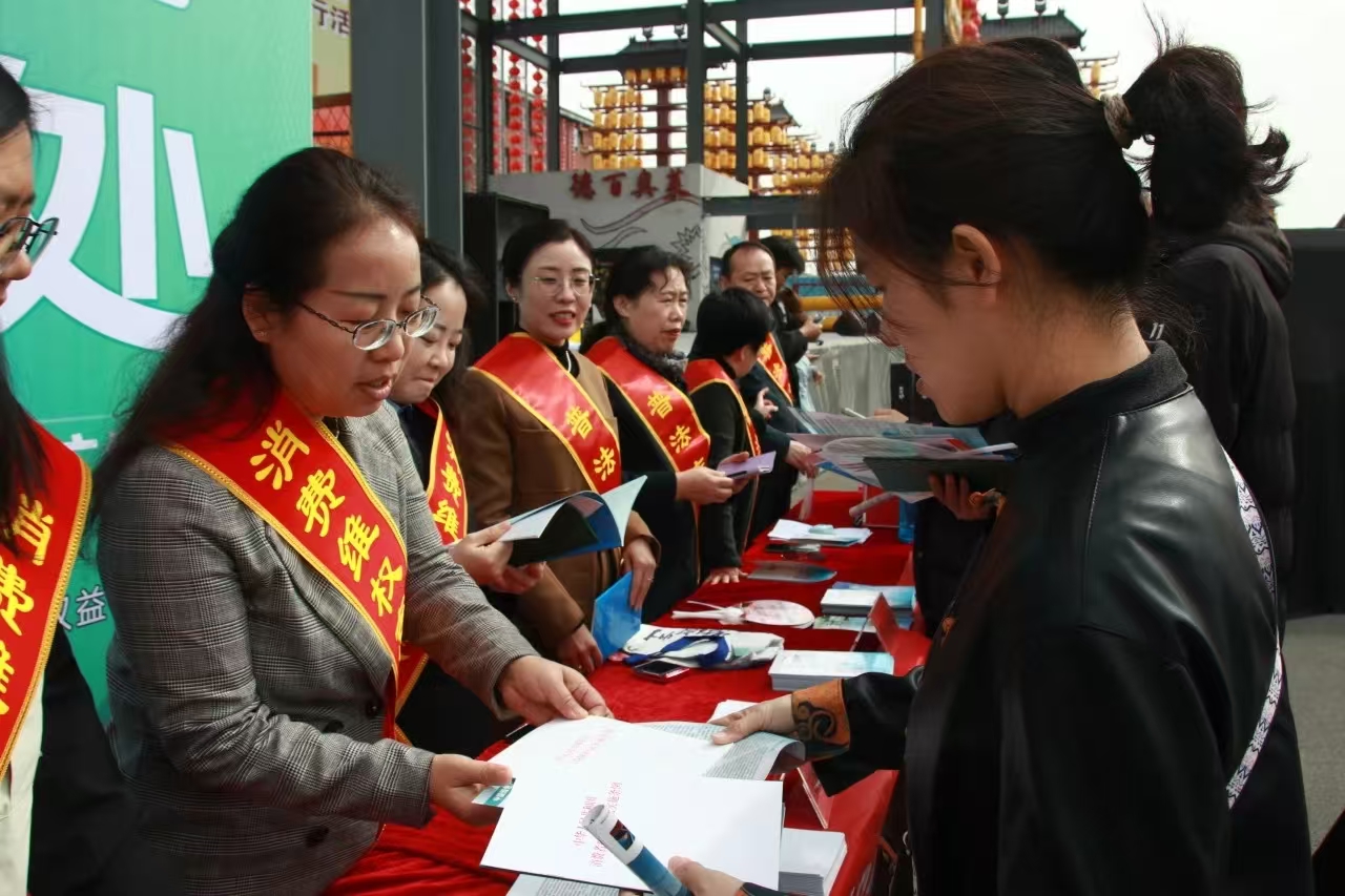 活动现场,徐丽红与其他律师一起发放普法宣传资料,向群众普及消费者权益保护相关法律知识,解答消费者在日常消费中遇到的法律问题。